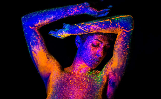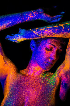 Experience life drawing in UV light with reactive arts materials. Be inspired by bold poses of vibrant body painted models.